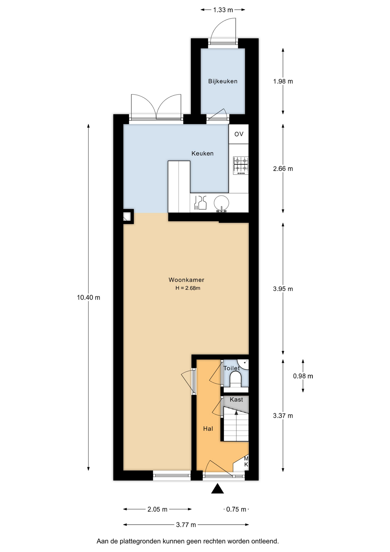 Je komt binnen in de hal met toilet, meterkast en trapopgang. Vanuit hier stap je de woonkamer binnen, waar aan de voorzijde plek is voor een eetgedeelte en het zitgedeelte centraal gelegen is. De open keuken ligt aan de achterzijde en grenst direct aan de tuin. Deze is praktisch ingedeeld en voorzien van een bar en diverse inbouwapparatuur, waaronder een nieuwe vaatwasser (2025), oven (2024), gaskookplaat, koelkast en combi-oven. Via de openslaande deuren loop je zo de tuin in. Daarnaast is er toegang tot de bijkeuken, ideaal voor extra voorraad of als praktische opbergruimte.