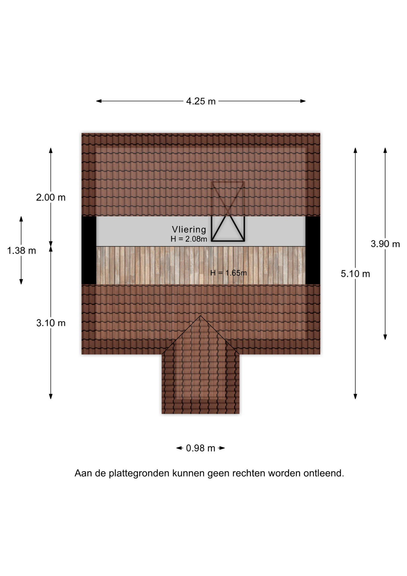 Via een vlizotrap is de vliering bereikbaar. Deze extra ruimte van circa 5,9 m² is ideaal te gebruiken als berging.