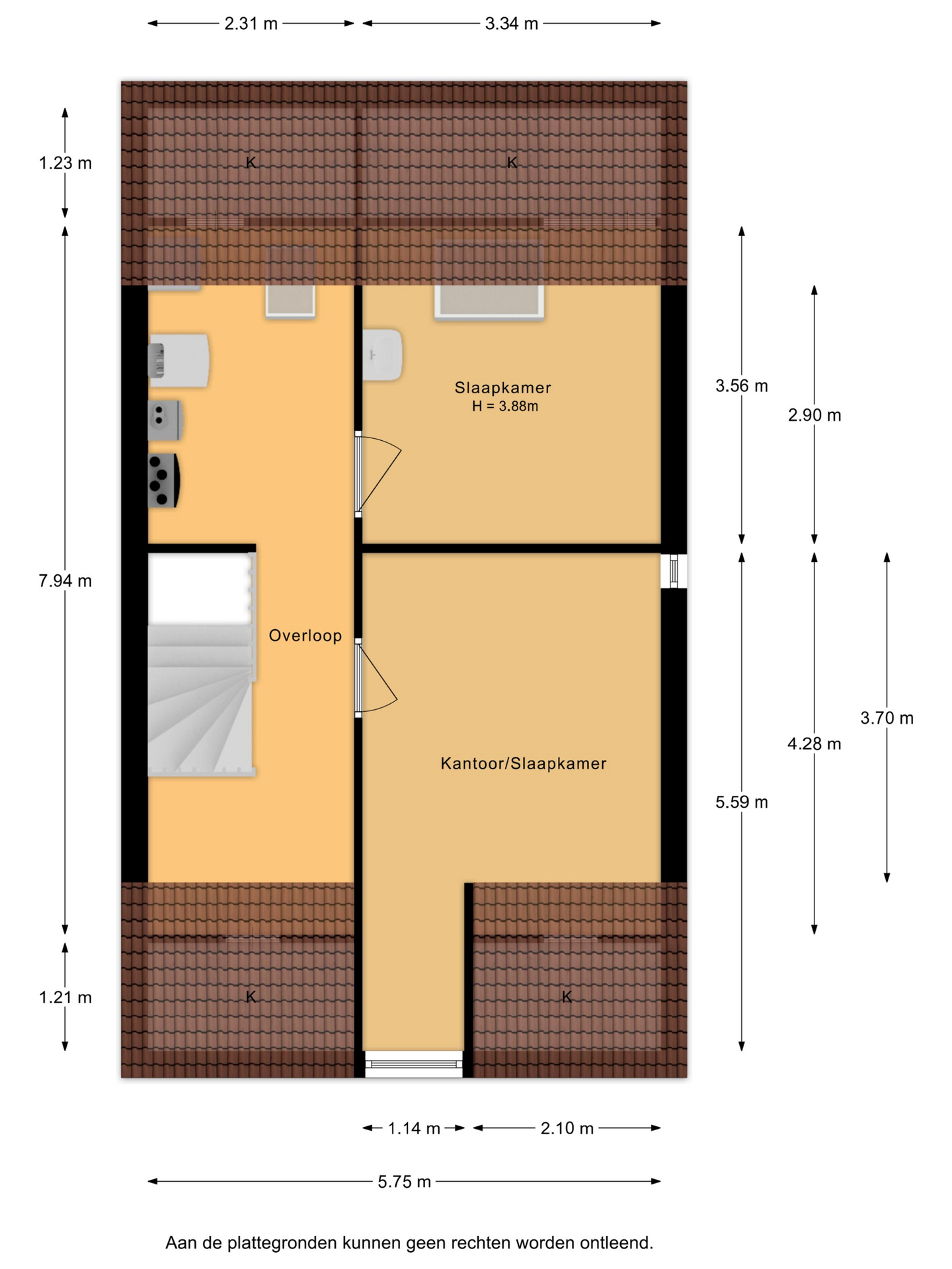 Op deze verdieping bevinden zich nog twee extra slaapkamers. Eén kamer beschikt over een dakraam en wastafel. De andere kamer, momenteel ingericht als kantoor, is voorzien van een dakkapel waardoor hier een prettige en ruime werk- of slaapkamer is ontstaan.