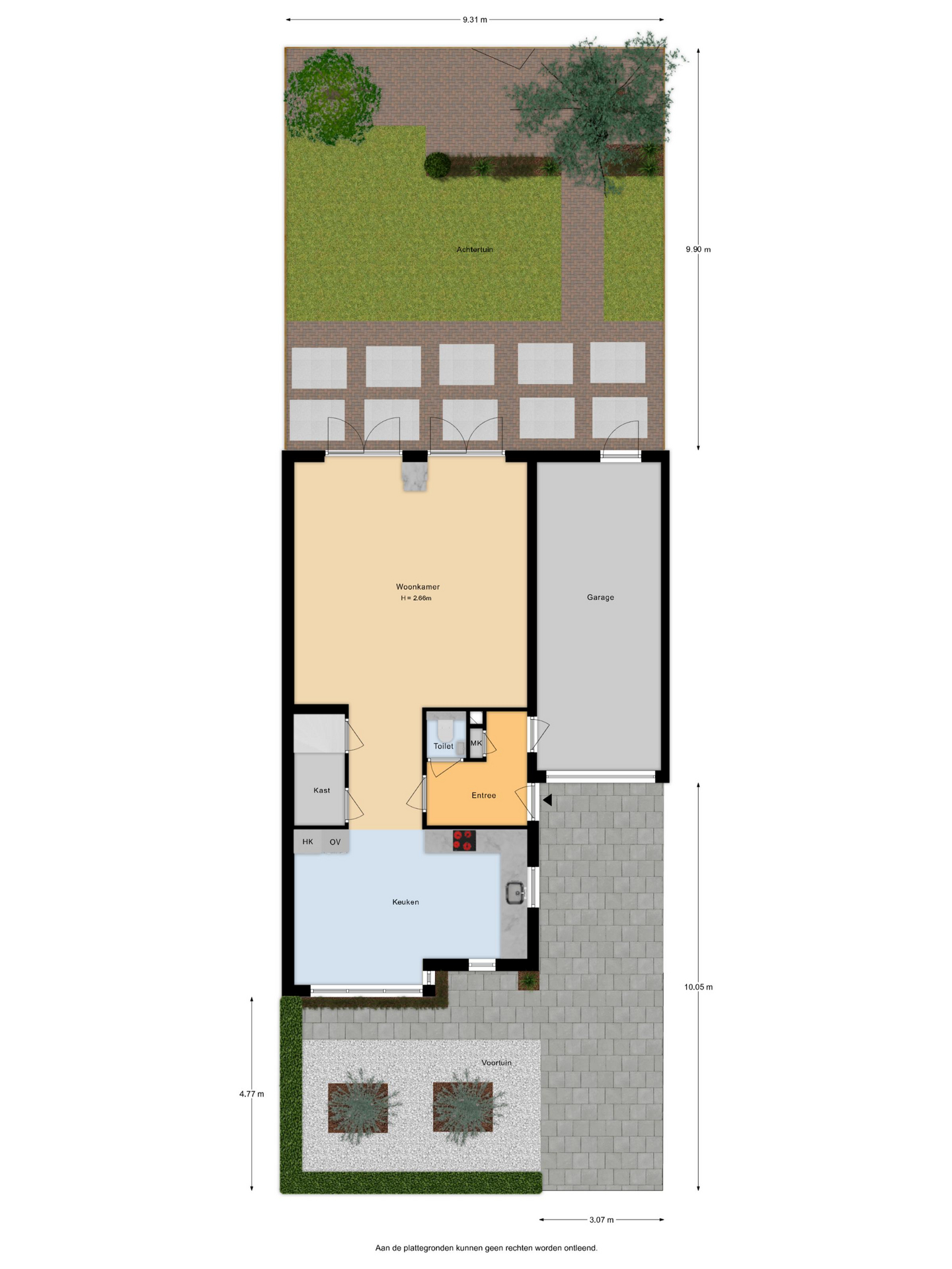 Daarnaast is de tuin voorzien van een achterom en directe toegang tot de garage. De garage biedt volop ruimte voor het stallen van fietsen en het opbergen van tuinmeubilair en gereedschap.