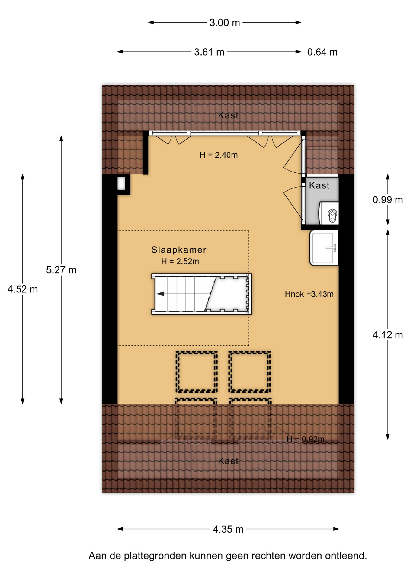 Via een vaste trap bereik je de ruime zolderverdieping. Dankzij de dakkapel aan de achterzijde en de 4 dakramen aan de voorzijde is dit een heerlijke, lichte ruimte. Hier kun je eenvoudig een master bedroom of extra werkkamer creëren. Deze verdieping beschikt over een wasmachineaansluiting, wastafel en veel bergruimte achter de knieschotten. Extra opbergruimte tref je op de halfopen vliering. Dankzij de hoge nok (circa 3,30 meter) voelt de ruimte extra ruim aan.