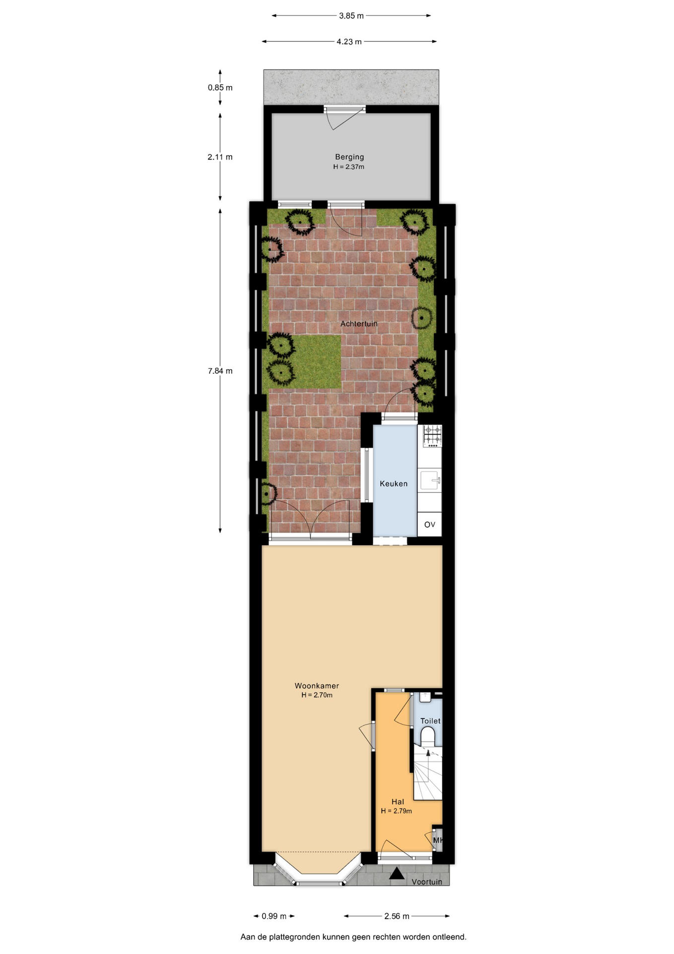 Wat een heerlijke plek om te zijn! De tuin is diep, groen en met zorg aangelegd – perfect om tot rust te komen of gezellig te borrelen met vrienden. Dankzij de verschillende zitplekken geniet je hier de hele dag van zowel zon als schaduw. Achterin de tuin staat een ruime stenen berging met elektra en wateraansluiting en via het achterom ben je zo weer buiten de tuin.