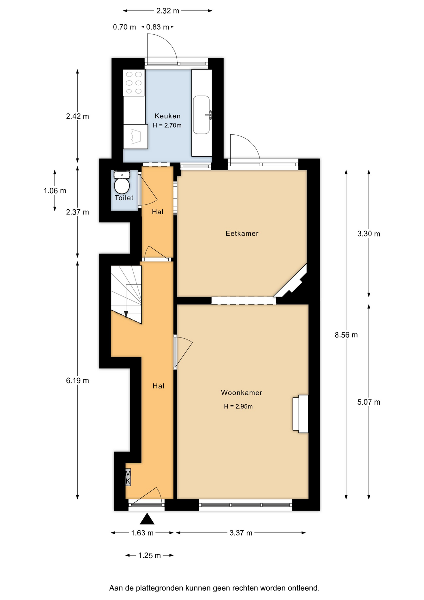 Bij binnenkomst word je verwelkomd in het originele tochtportaal met meterkast en trapopgang. Vanuit de hal met toilet stap je de sfeervolle woonkamer binnen, waar de hoge plafonds, houten vloer en schouw met houtkachel meteen voor warmte en karakter zorgen. De eetkamer sluit hier mooi op aan en loopt door naar de eenvoudige keuken in de aanbouw.