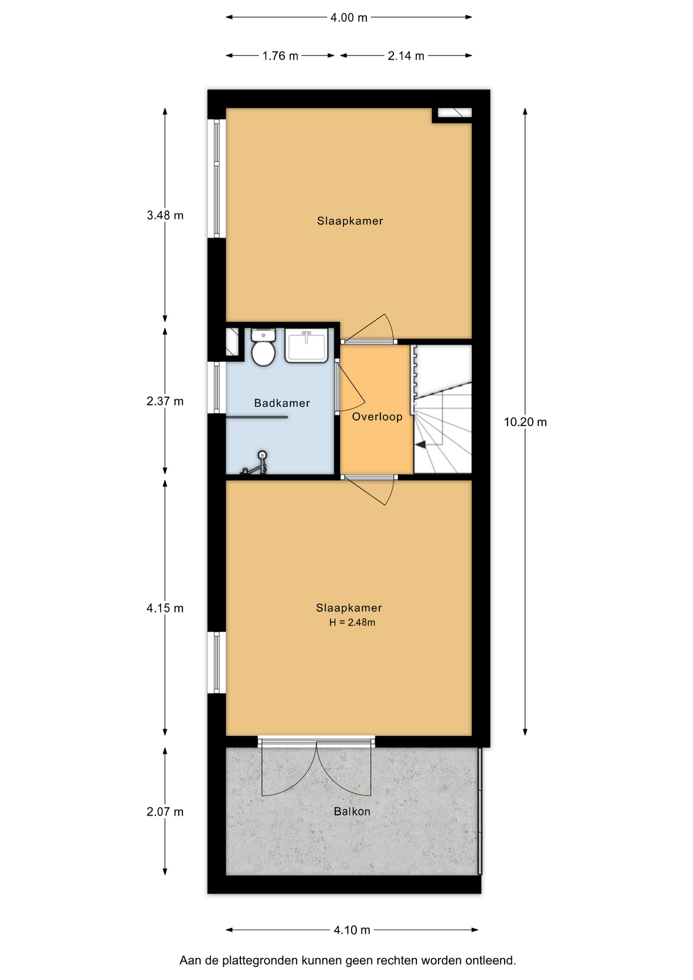 De overloop biedt toegang tot twee ruime slaapkamers (circa 16,6 m² en 14 m²) en een verzorgde badkamer. Deze is volledig betegeld en voorzien van een inloopdouche, toilet en wastafelmeubel. Vanuit de slaapkamer aan de voorzijde stap je zo het zonnige dakterras op.