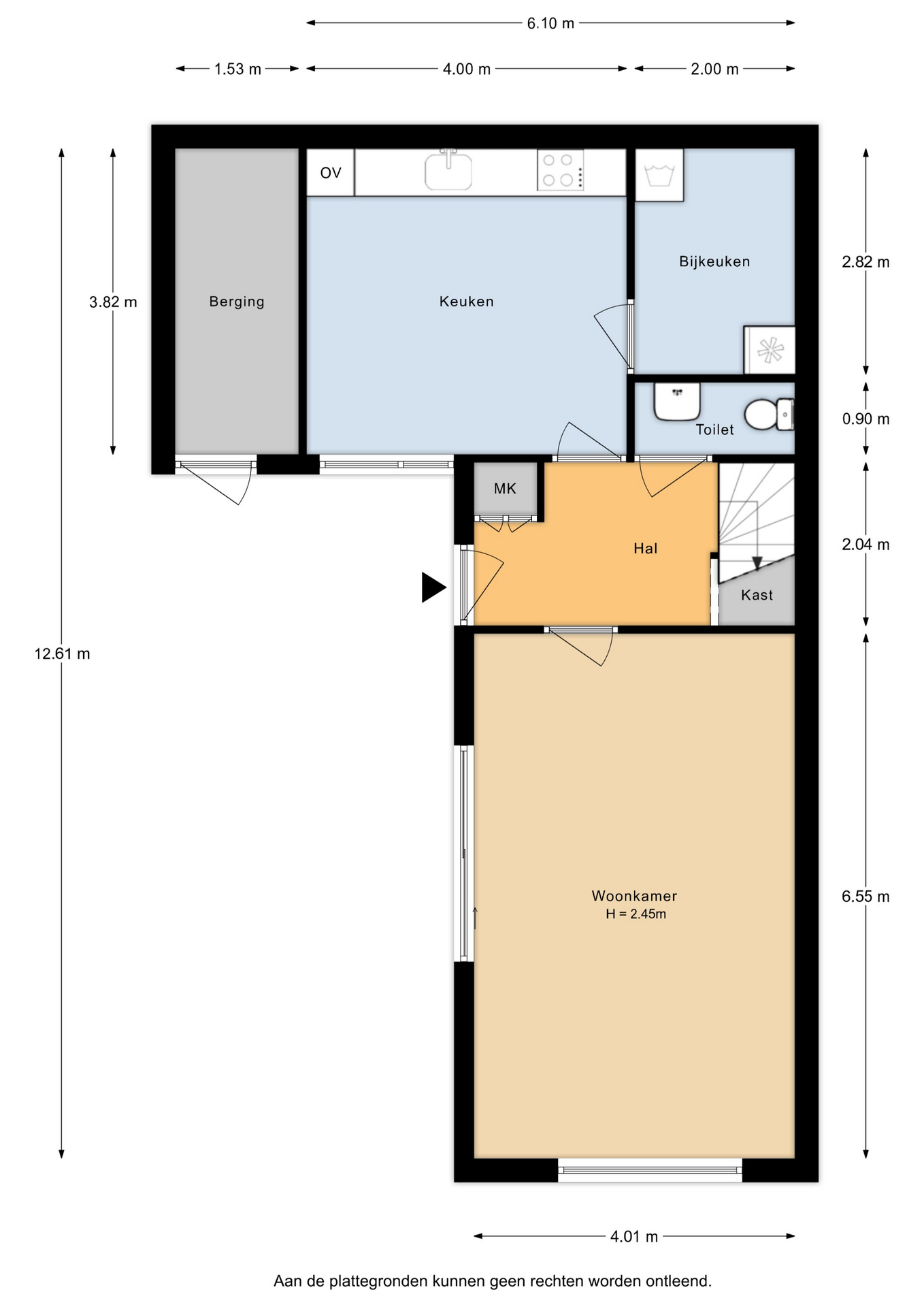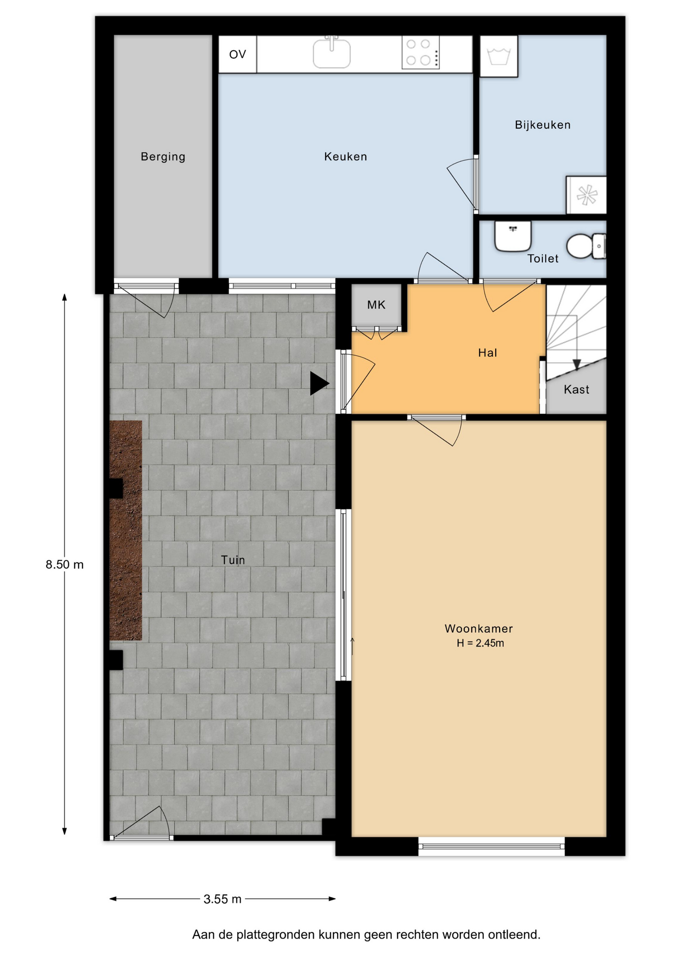 Via de entree kom je in een nette patio met toegang tot de woning en een ruime stenen berging. De hal geeft toegang tot de meterkast, een praktische trapkast, een toilet met fonteintje en de woonkamer en keuken.