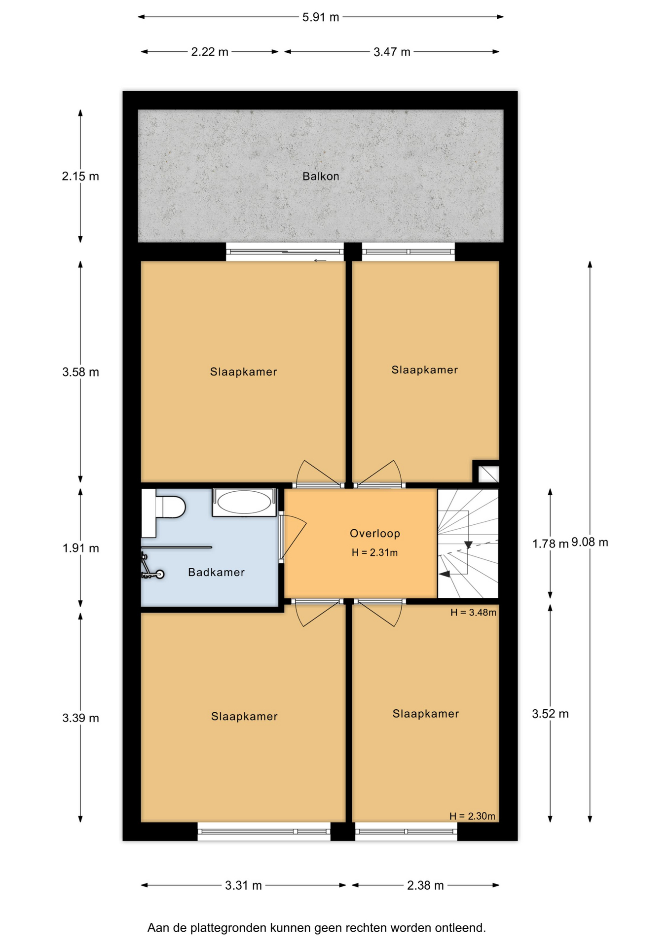 Op de eerste verdieping bevinden zich vier ruime slaapkamers en een stijlvolle badkamer. De twee grootste kamers lenen zich perfect als master bedroom, terwijl ook de overige kamers verrassend royaal zijn. Vanuit de slaapkamer aan de achterzijde is er middels een schuifpui toegang tot het balkon van circa 13,5 m² — een heerlijke plek om even buiten te ontspannen.