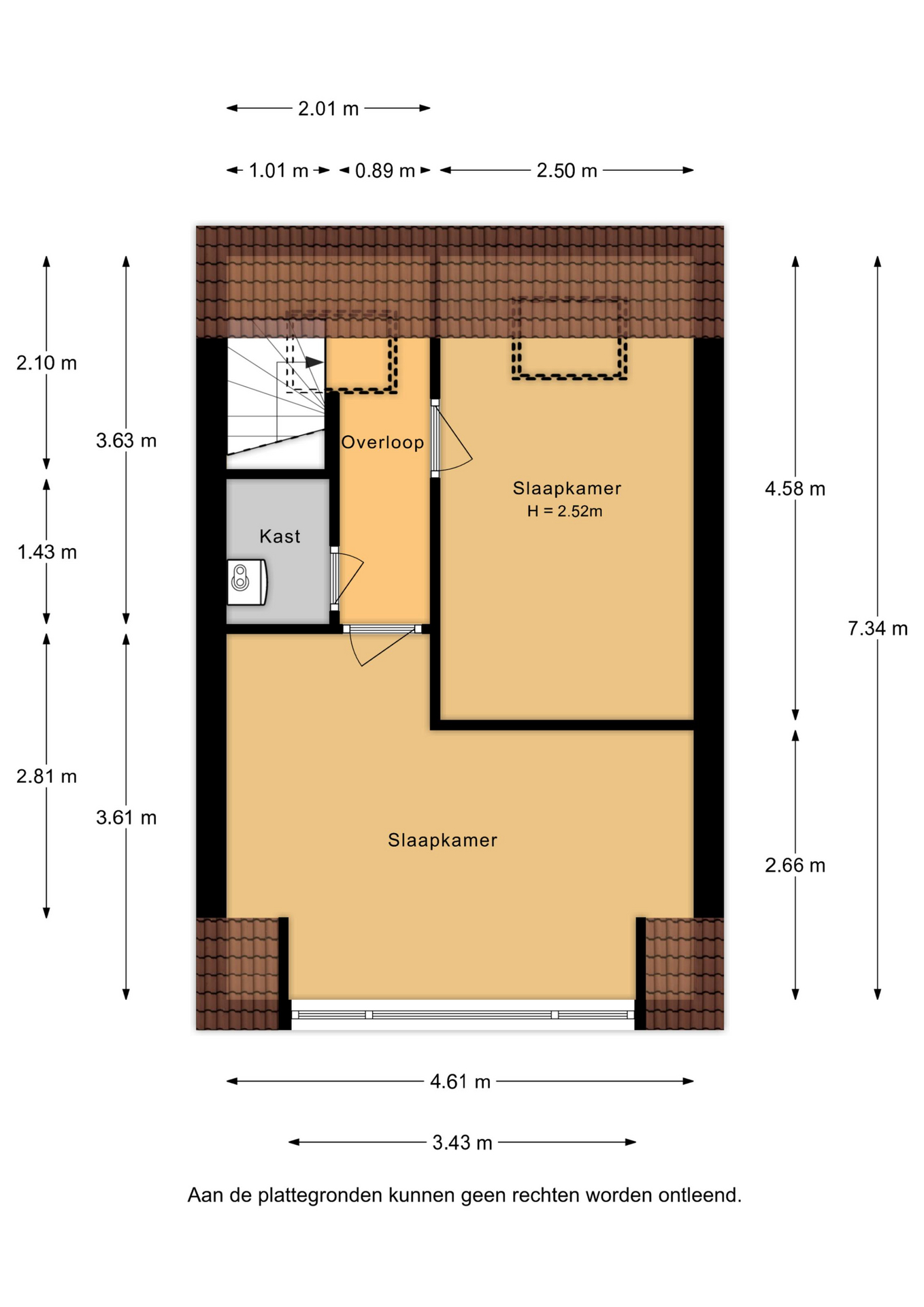 Overloop met dakraam. Twee royale slaapkamers, waarvan één voorzien van een dakraam en de andere van een dakkapel. Ideaal voor extra slaapkamers, een thuiswerkplek of hobbyruimte.