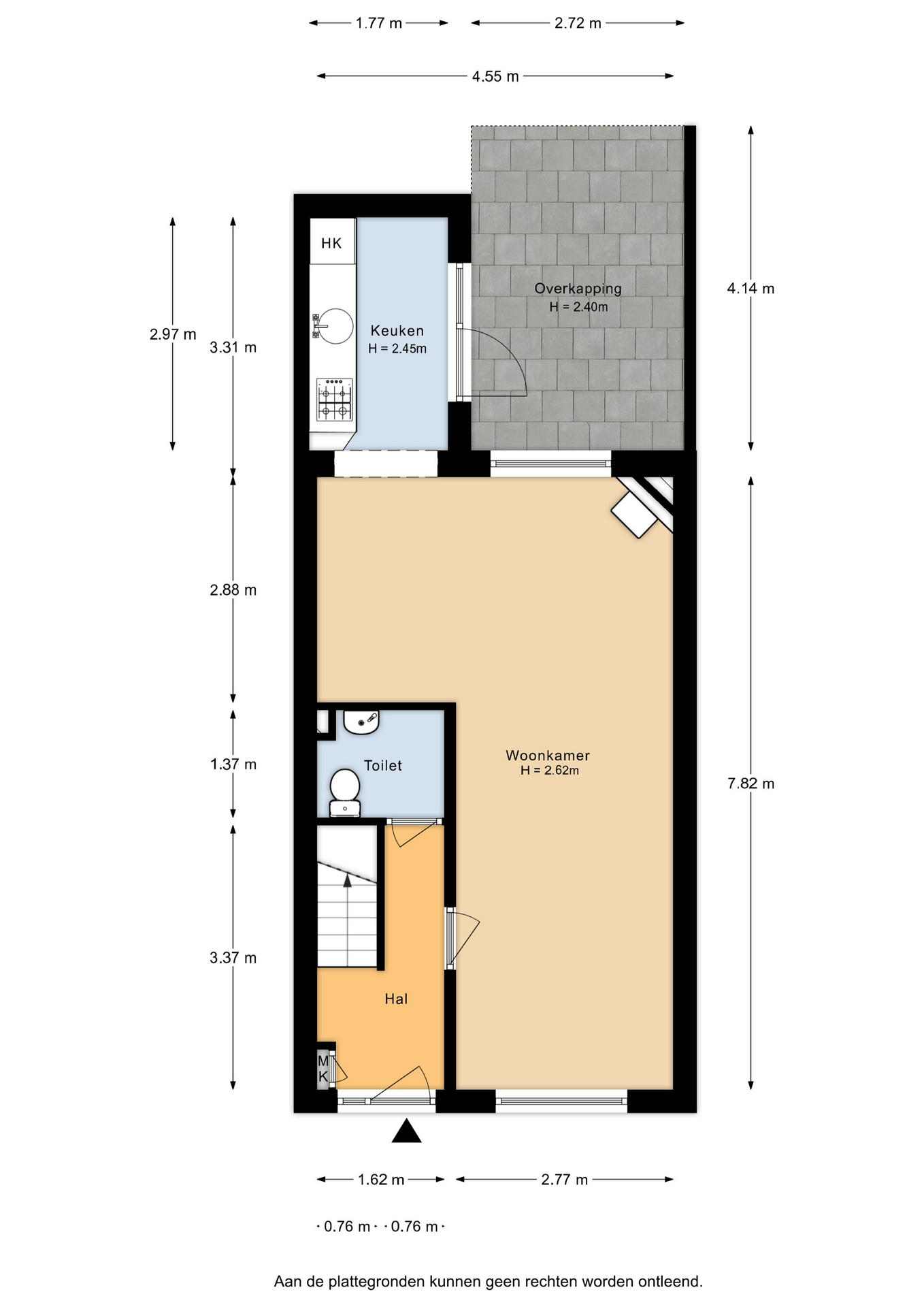 Entree/hal met meterkast en trapopgang naar de eerste verdieping. Vanuit de hal bereik je de doorzon woon-eetkamer, voorzien van een gaskachel. Aansluitend bevindt zich de halfopen keuken met toegang tot de achtertuin. Deze verdieping biedt volop mogelijkheden om een moderne, open leefruimte te creëren.