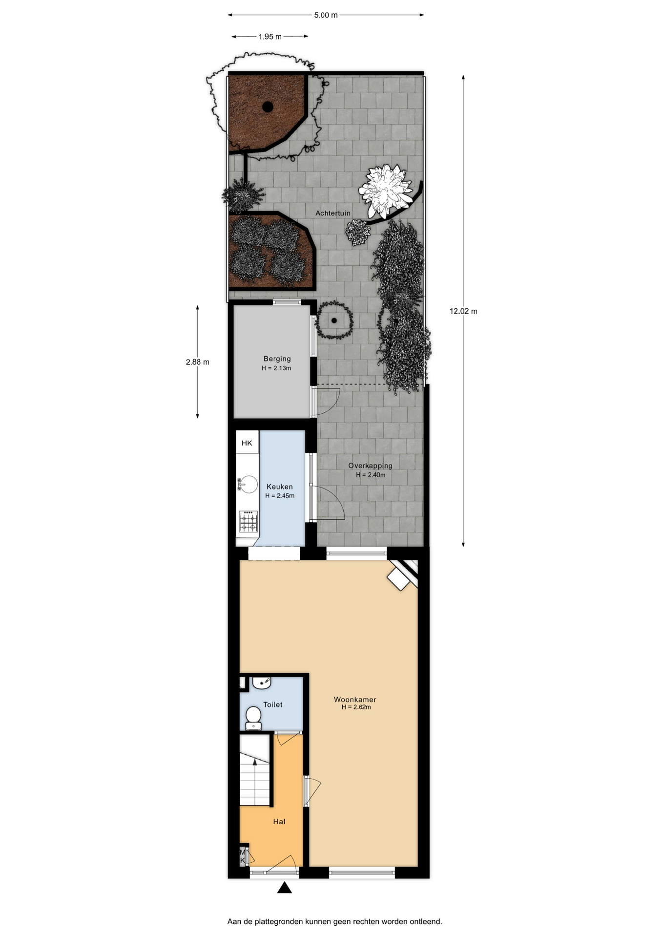 Diepe achtertuin van circa 12 meter, gelegen op het noordoosten, voorzien van een stenen berging. Met de juiste aandacht kan hier een fijne buitenruimte worden gerealiseerd.