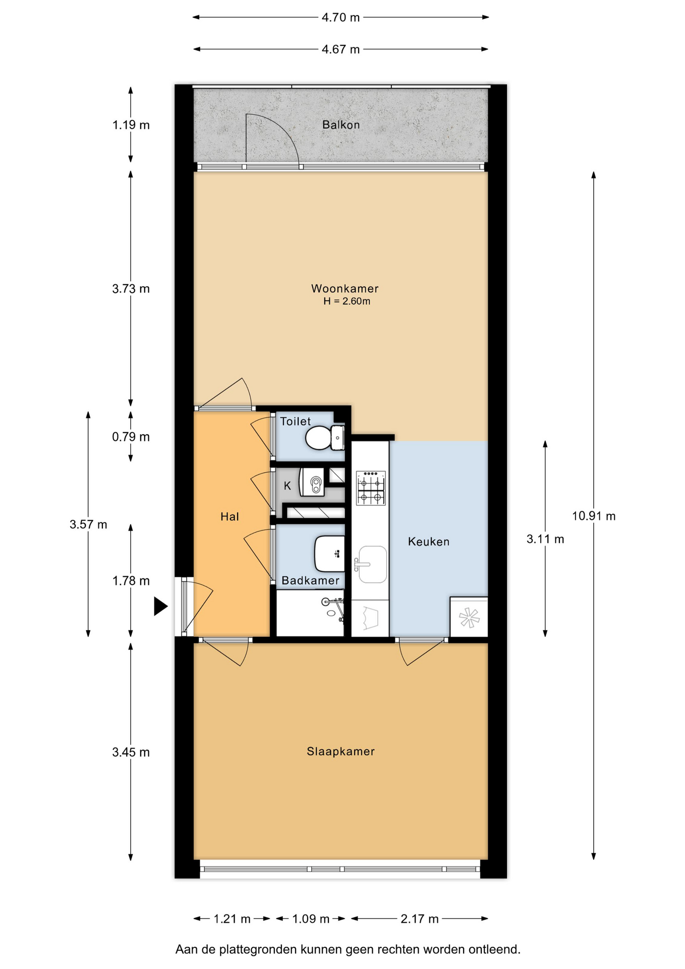 De half open keuken is uitgerust met een wit keukenblok en beschikt over een aansluiting voor de wasmachine. Vanuit de keuken is er directe toegang tot de slaapkamer. De badkamer met douche en wastafelmeubel is praktisch gescheiden van het toilet. De slaapkamer van circa 16 m² is heerlijk licht dankzij de grote raampartijen, maar blijft aangenaam koel doordat deze op het noorden ligt – ideaal tijdens warme zomerdagen.