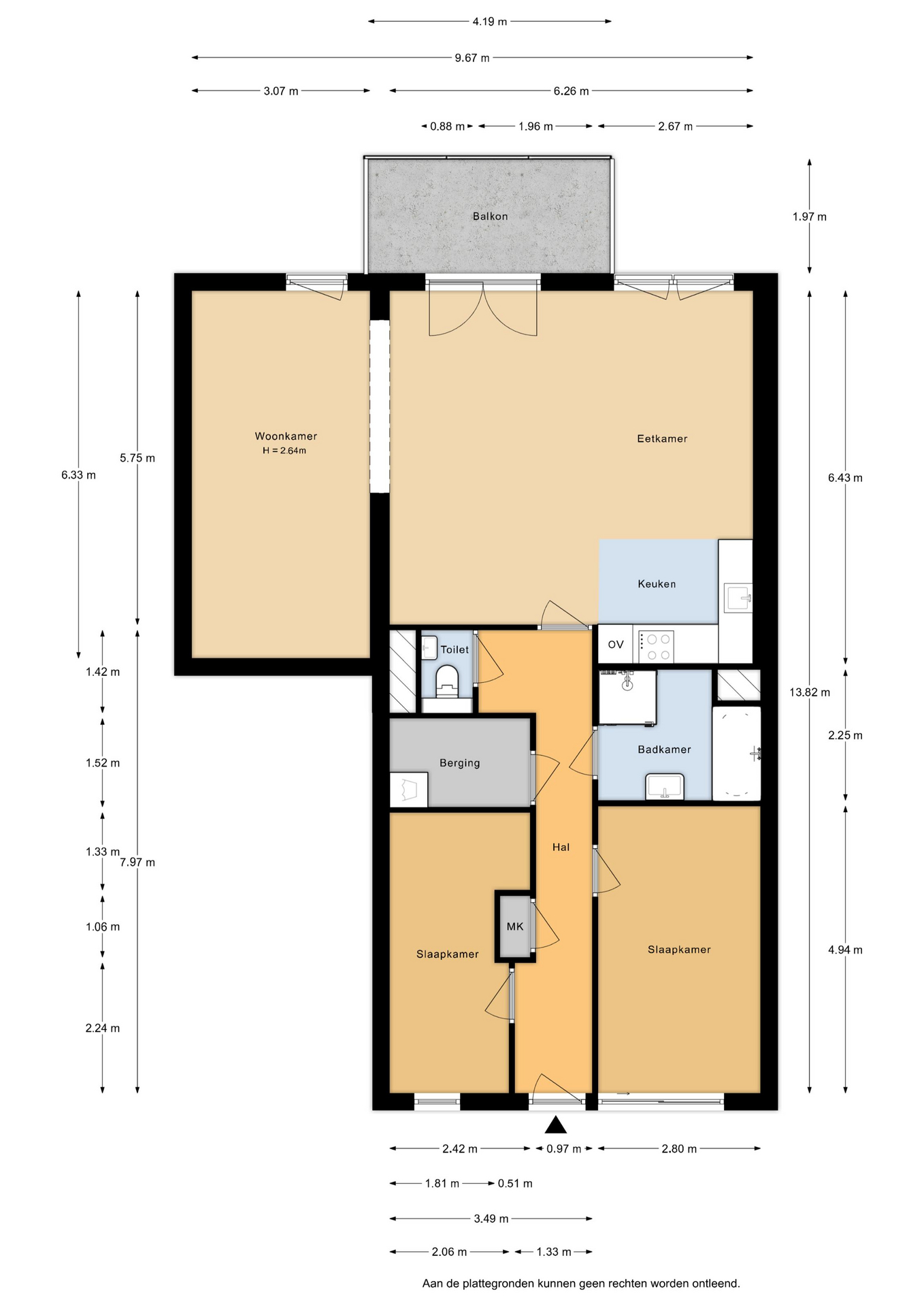 Je komt binnen in een verzorgde hal die toegang biedt tot alle vertrekken. Aan het einde van de hal ligt de royale woonkamer, het kloppend hart van de woning. Dankzij de grote raampartijen geniet je hier van veel daglicht. De rechthoekige indeling biedt volop mogelijkheden: plaats moeiteloos een ruime hoekbank, een eettafel voor zes tot acht personen en eventueel een werk- of leeshoek. Door het gehele appartement ligt een verzorgde laminaatvloer.